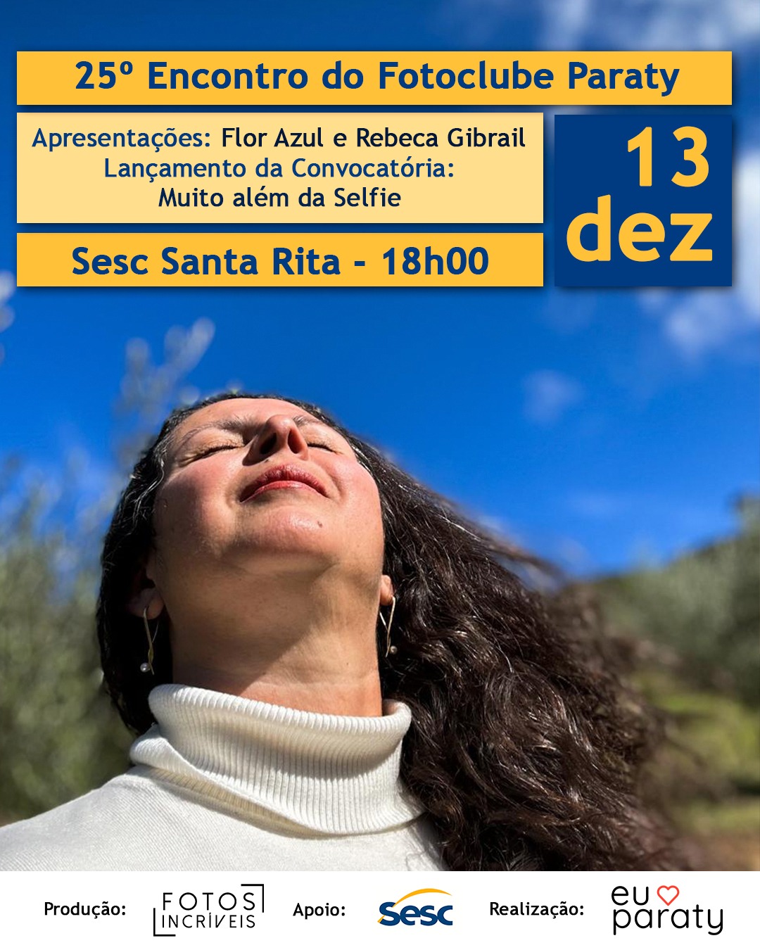 Durante o encontro, será lançada oficialmente a nova convocatória do Fotoclube, intitulada ?Muito além da Selfie?, que convida fotógrafos da cidade a explorar o autorretrato como ferramenta de expressão, identidade e narrativa visual.