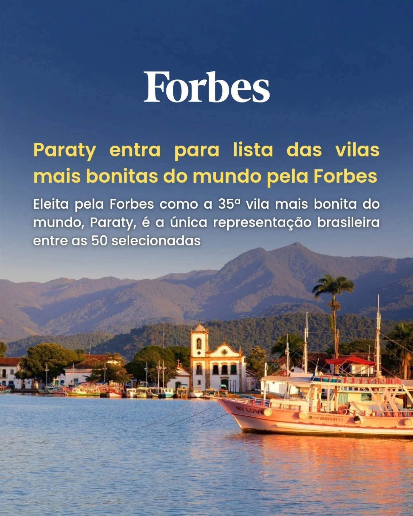 A revista Forbes divulgou uma lista com as 50 vilas mais bonitas do mundo, e Paraty foi a única cidade brasileira a integrar o ranking, ocupando o 35º lugar.