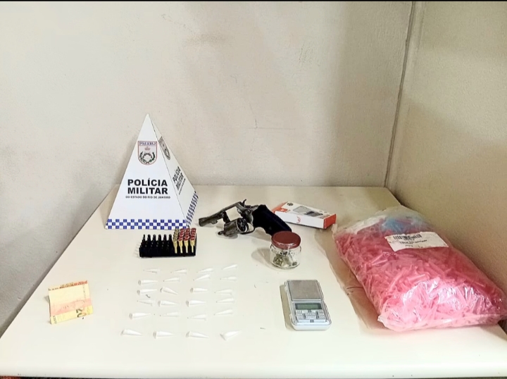 De acordo com a PM, durante o patrulhamento, os agentes identificaram um suspeito com características compatíveis às informações recebidas. Na abordagem, foram encontrados uma arma de fogo, munições e entorpecentes.
